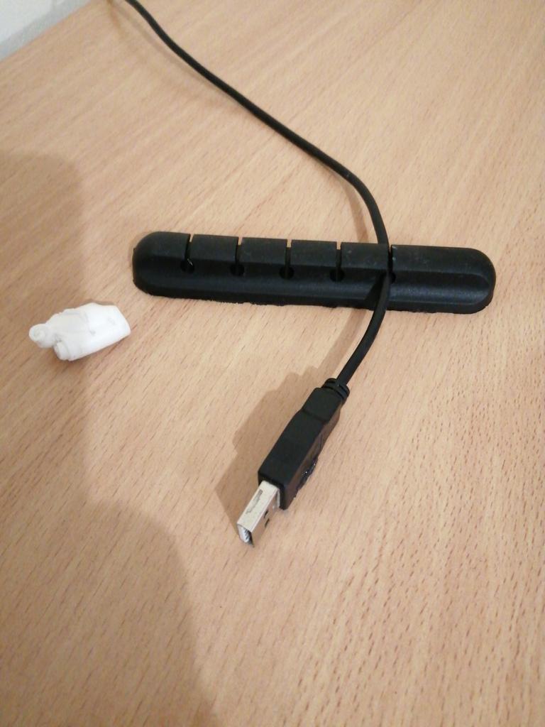 Lepidlo špatně drží ani na stole, ani na držáku kabelu. Zahákl jsem kabel a spadlo to.
