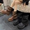Platformové Dámské Westernové Kovbojské Boty Módní Nazouvací Krátké Boty Podzim Zima Silný Podpatek Dámská Obuv