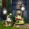 Garden Pug Dog Statue Solar Post Lamp Resin Sculpture Cute Waterproof Lawn Ornament for Front Yard,