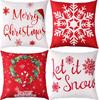 Christmas Decorations Pillow Covers 18×18 Inch Set of 4 Holiday Rustic Linen Pillow Cases for Sofa Couch Decor Cushion Covers