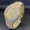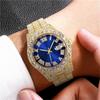 Fashion Hiphop Men Quartz Watch Luxury Cuban Bracelet Chain Sets Rhinestones Dress Wristwatch For Man Gift