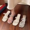 French evening breeze cool slippers summer outer wear women's shoes new year silver square head with skirt thick heel sandals