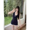 Wind V-neck lace floral neck halter dress women's summer slim temperament waist a word hip wrap skirt