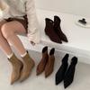 Evropa, Amerika 2025 podzim a zima nové jednoduché matné semišové ploché ponožkové boty plochý podpatek tenké boty temperament špičaté krátké boty ženy