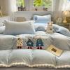 Zimní Mléčný Korálový Fleecový Postelový Čtyřdílný Set Plyšový Povlak na Přikrývku Prostěradlo Povlaky na Polštáře Set