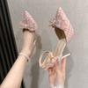 Medium heel stiletto high heels women's sandals 2025 summer new one-word buckle bow single shoes fairy style work shoes