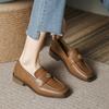 Washed cowhide 34-40 yards 2025 autumn square head middle heel deep mouth single shoes women's shoes square buckle loafers