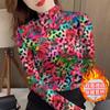 Dámské zimní sametové základní tričko teplé s polovičním rolákem a dlouhým rukávem módní retro tričko s leopardím potiskem