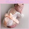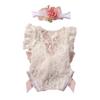 Novorozená miminka Holčičky Bowknot Měkká krajka Romper Květinová čelenka Fotografické rekvizity
