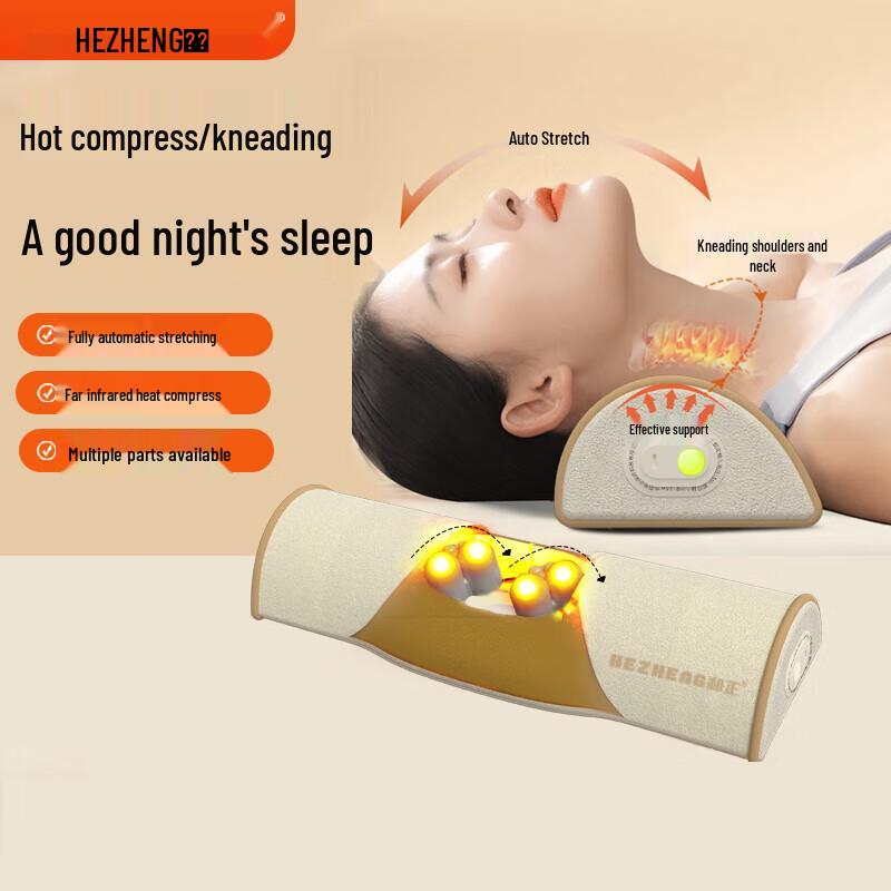 This HEZHENG multi-mode neck massager pillow features human-like kneading massage and soothing heat compress function. Designed for the neck, shoulders, back, legs, and feet, it provides full-body relief. It's portable and ideal for use in the office, at home, or while traveling. Powered by Type-C, it offers easy button control.