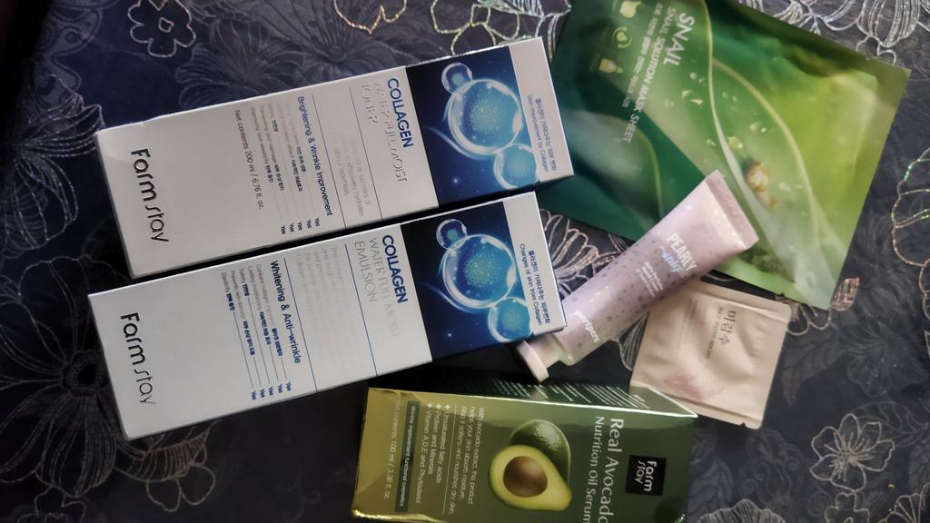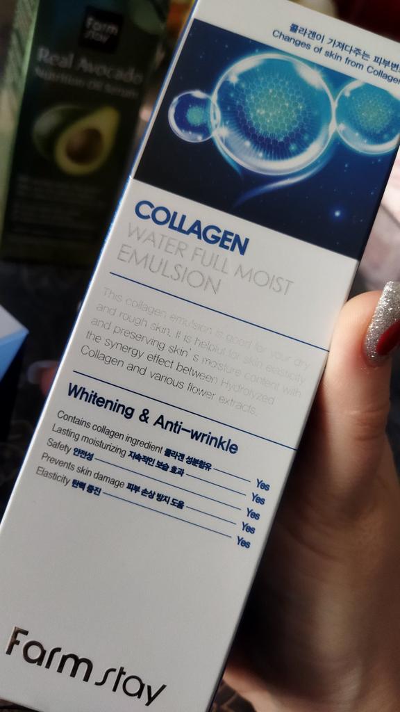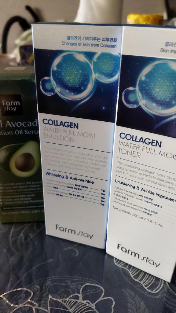 - FARM STAY Collagen Water Full Moist Skin Care SET = Collagen Water Full Moist Skin Toner 200ml / 6.76 fl. oz + Collagen Water Full Moist Skin Emulsion 200ml / 6.76 fl. oz