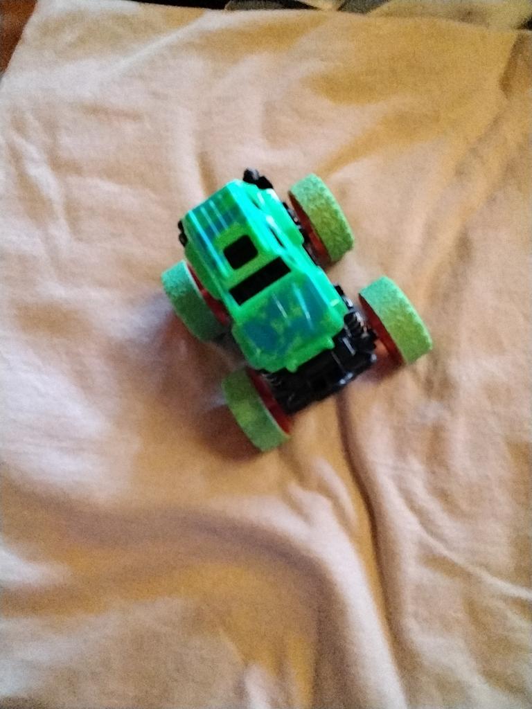 The dimensions are not shown. The car is small, 10 x 10 cm. The box was dented to the brim. Thank God the toy was not broken.
