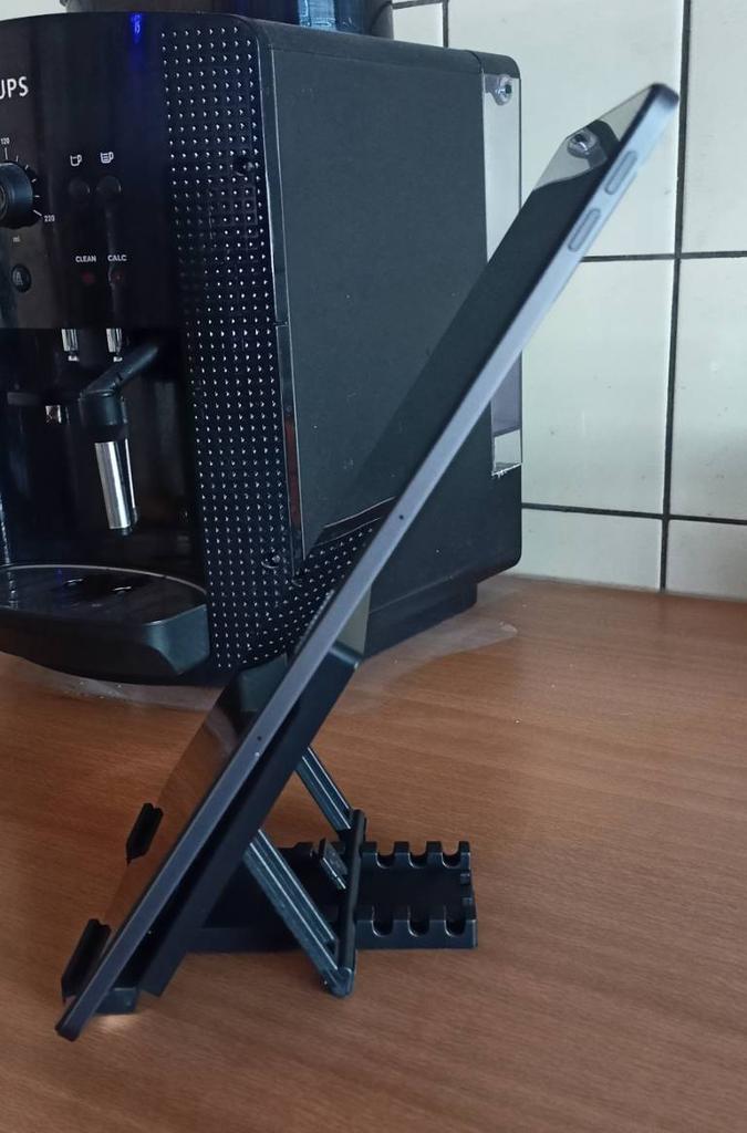 Works well but could have been a bit deeper (2cm) and more rigid so that a 12.7" tablet could be used in portrait mode without the risk of tipping backwards when the screen is touched. That said, the stability is very good for the smartphone in any position and for the tablet in landscape mode.