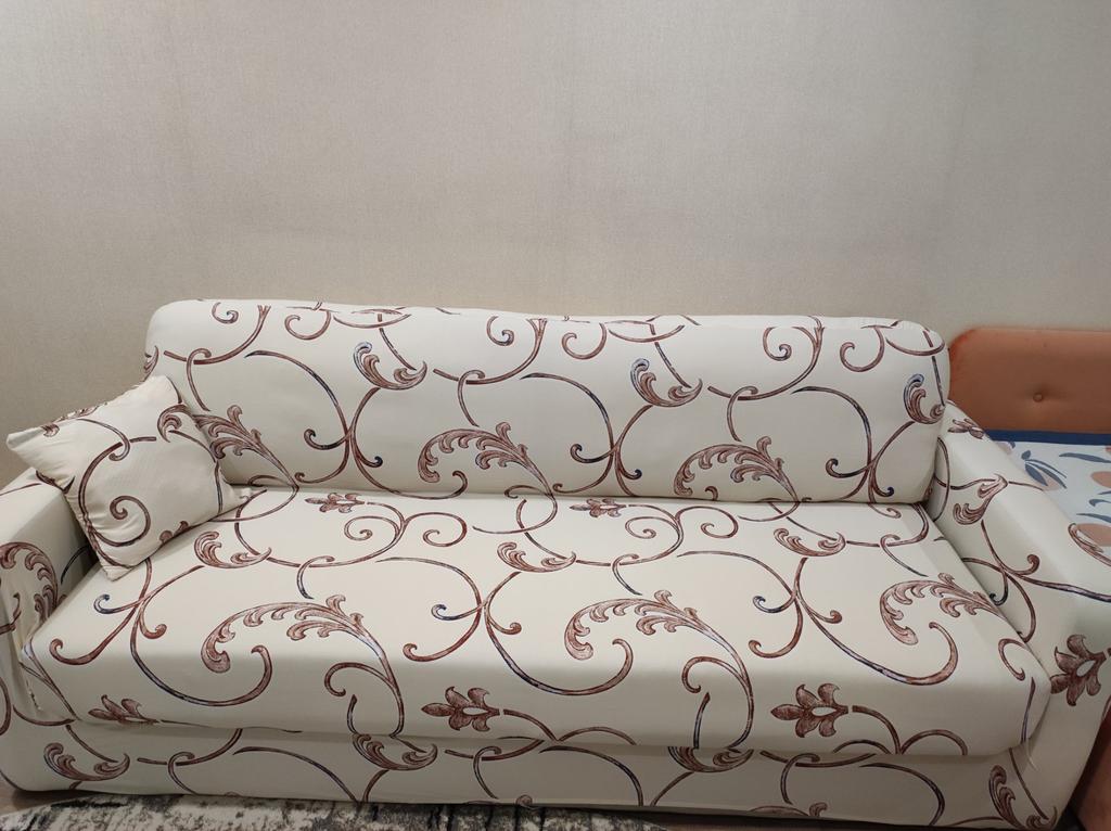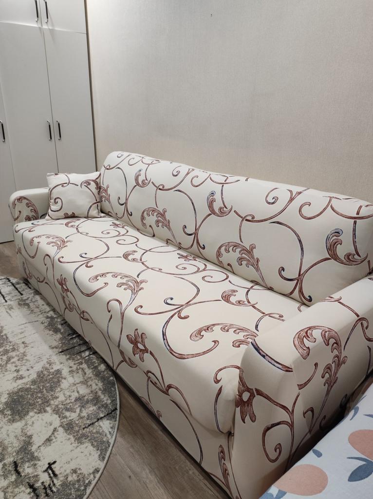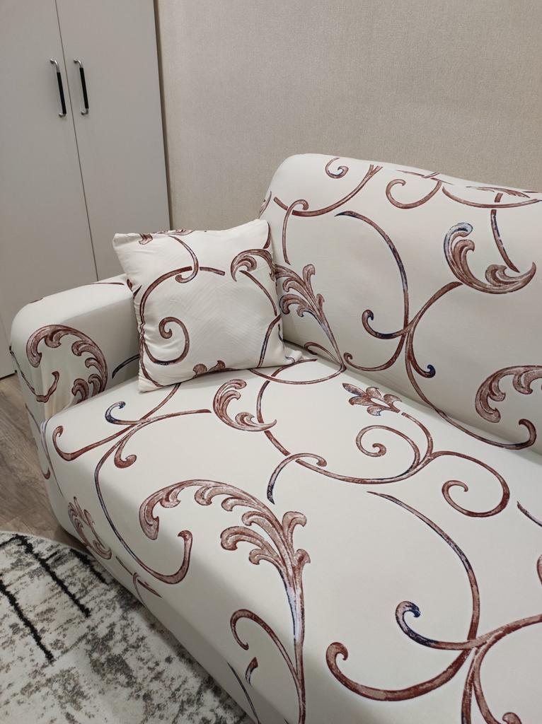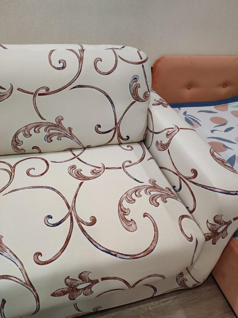 The product is of good quality. The color fully matches the picture on the website. The covers have additional fastenings - these are sewn-on ties that are simply tied under the armchair and sofa. A pleasant bonus - the supplier included a zippered pillowcase for a small cushion with each cover.