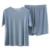 2Pcs/Set Men Loungewear O-Neck Short Sleeve Tops Elastic Waist Wide Leg Shorts Set Solid Color Ice Silk Homewear Seamless Pajama Set