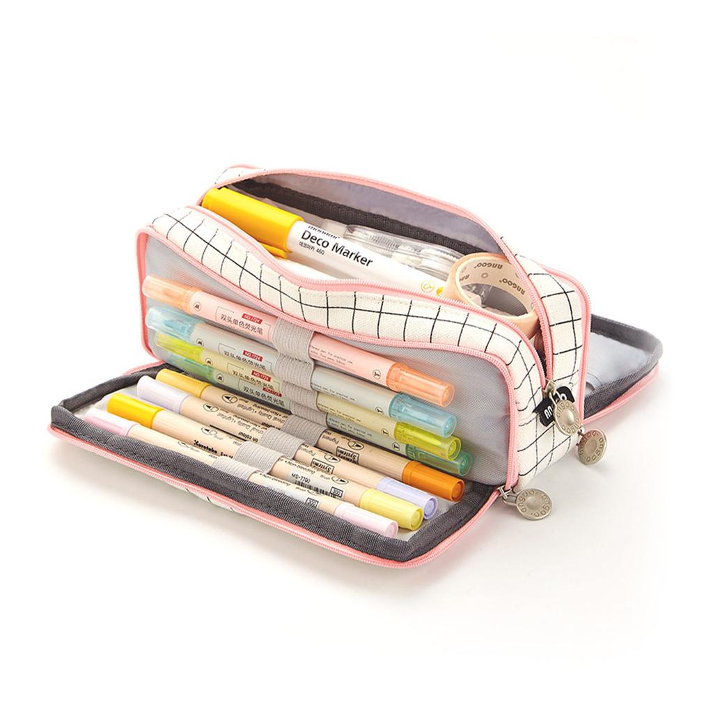 Large Capacity Pencil Case Multi Pocket Double Opening Cute Stationery Bag for Student School Black