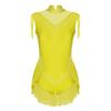 Girls Sparkling Rhinestones Dance Leotard Mock Neck Sleeveless Invisible Zipper Back Sheer Mesh Skirted Bodysuit