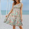 Summer Beach Skirt Floral One Shoulder Medium Length Dress Bohemian Strapless Strapless Dress