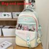 Color Blocked Fashionable Letter Printed Student Backpack With Pendant Daily For
