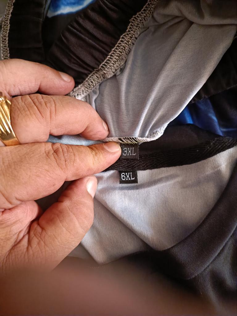 Las medidas no coinciden. Encima el pedido era de 6XL. Me ha llegado la camiseta de 6XL. Y el pantalón viene de talla, 3XL. Por eso tampoco coinciden las tallas porque viene cada pieza de una medida distinta.