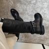 Cowhide Black Boots Handsome Belt Buckle Low Heel High Tube Skinny Locomotive Boots Leather Boots Round Head Knight Boots Women