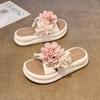 Fairy mesh yarn flower thick bottom one-word drag girl 2025 summer new small light comfortable non-slip cool slippers
