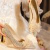 2024 Hot Sale Women's Shoes Shallow Women's High Heels Fashion Floral Wedding Pumps Women New String Bead Crystal Heels Women