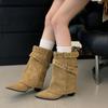 Cowhide retro thick heel knight boots women's medium boots versatile pointed western cowboy boots belt buckle trouser boots