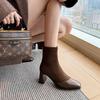 7CM fashionable and foreign style is thin, elastic and thin boots, female celebrity style versatile splicing square head thin heel small short boots,