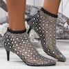 Women's Pointed Toe Mesh Rhinestone Stiletto Heel Fashion Sandals, Breathable Ankle Booties