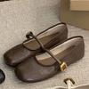 נעלי נשים שטוחות משאבות עם בוהן מרובעת צרפתית רצועת אבזם נעלי מרי ג'יין נעלי עור מיקרופייבר חומות שחורות נעליים רכות סוליה נעלי עבודה לנשים