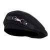 Hat women's new leather buckle design windproof beret metal warm painter hat navy hat octagonal hat