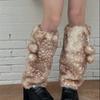 Deer Print Leg Warmers Women Faux Fur Fuzzy Calf Warmers with Pompoms Fluffy Boot Cuffs Cover for Sneakers Girls Winter Street Wear