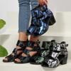 Fashion 2025 New Women Sandals Brand Designer Cross Strap Sandals Colorful Pattern High Heels Sandals Women Sexy Plus Size Shoes Women