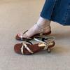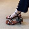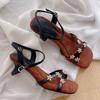French rhinestone flower comfortable and versatile foreign style word with square head sandals femininity versatile skirt high heels summer