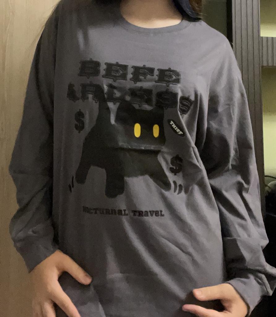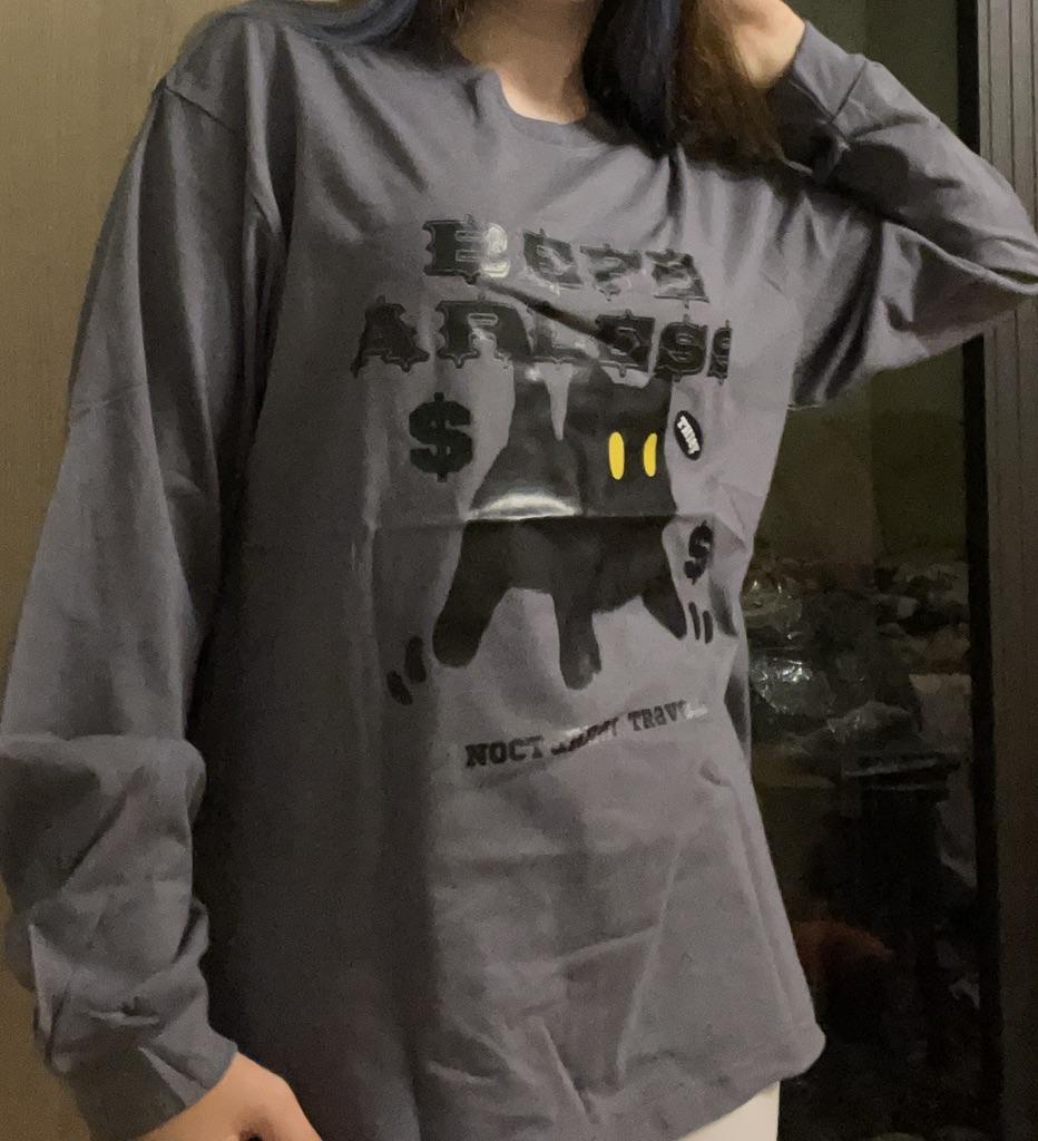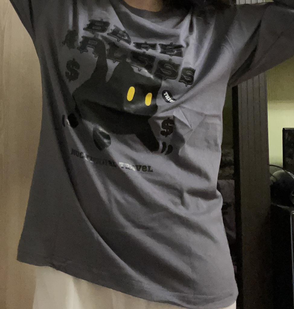 Magliette Grunge Cat Donna Harajuku Moda coreana Magliette oversize a maniche lunghe Donna Hip Hop Vintage Top grigio sciolto