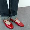 Fashion Red Flats Shoes for Woman 2024 Square Toe Flat Low Heel Elegant Normal Leather Casual Women's Summer Footwear 39 Fashion Chic A
