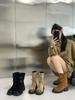 Cowhide version~ Contrasting color belt buckle boots women's retro suede splicing knight boots Maillard slim stacking boots