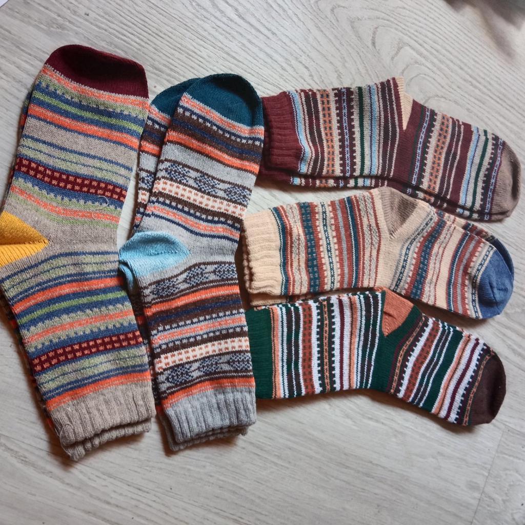 5 წყვილი მამაკაცის სქელი წინდები რეტრო ზოლიანი სქელი ხაზის წინდები პლუს ზომა 46