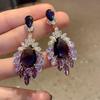 Huitan Charming Water Drop Purple CZ Drop Earrings for Women Luxury Bridal Wedding Jewelry Elegant Lady's Earrings for Party New