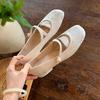 Fashion Flat Shoes for Women 2025 Spring and Autumn Pearl Square Toe Jacquard Mary Jane Shoes Ladies Loafers Women Zapatos De Mujer