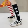 Women's Black and White Striped Knitted Leggings Spring Autumn Winter Models Versatile Footwear Warm Stacked Socks Boot Covers