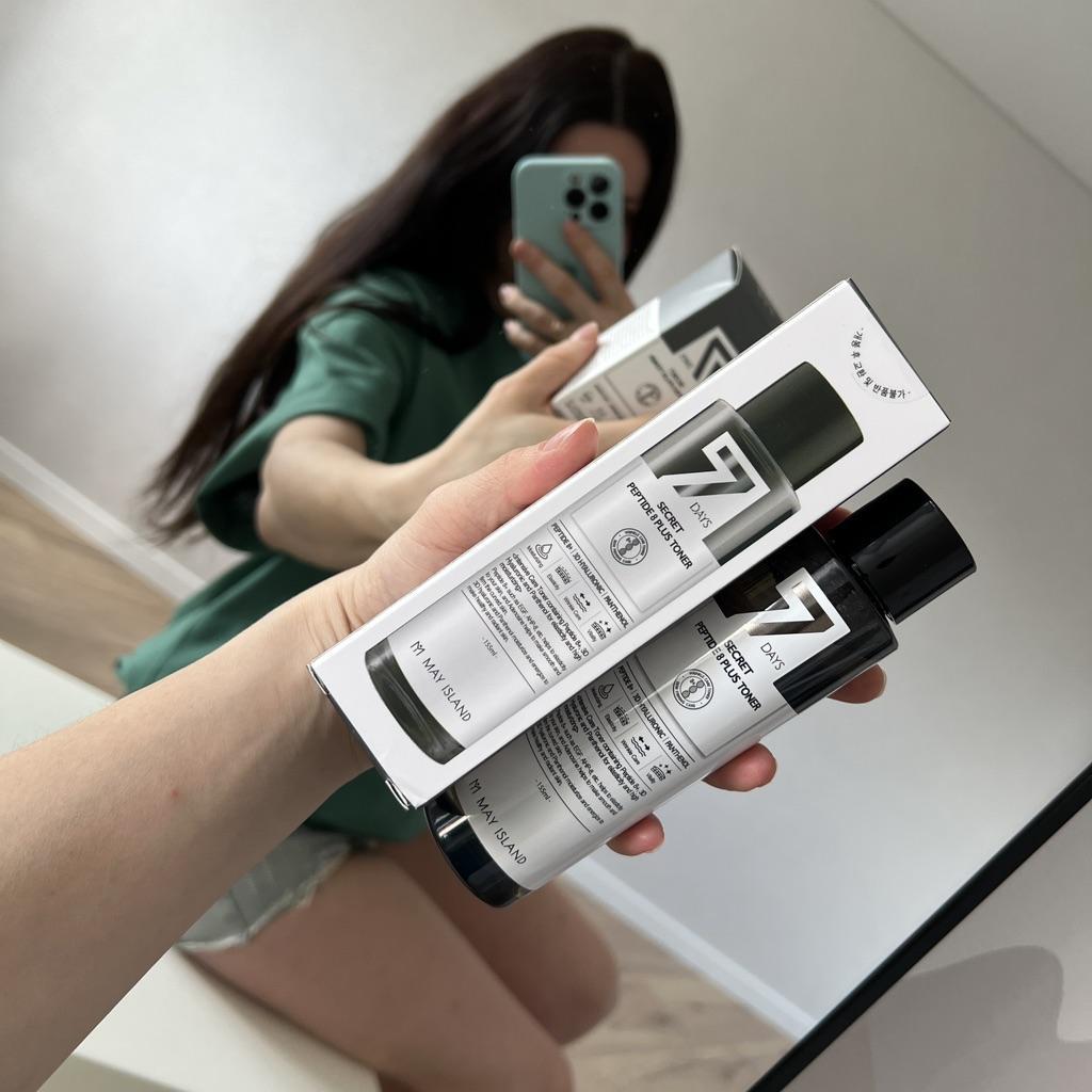 SEJAS ĀDAS TONIKS✨ Mayisland un tās produkti tagad ir garantija, es jūtos lieliski un man noteikti vajadzēja izmēģināt viņu sejas toniku no 7DAYS SECRET PEPTIDE 8+ līnijas ✅ Lietoju katru rītu un vakaru, papildus ādas attīrīšanai un attīrīšanai no kosmētikas atlikumiem, padara to svaigāku un elastīgāku, tādējādi sagatavojot ikdienas ādas kopšanai🫶🏽 Super apmierināts kā vienmēr 🚚❤️