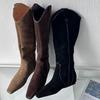 European goods popular fashion tall stacking boots women's 2025 autumn new square head low heel but knee casual western boots
