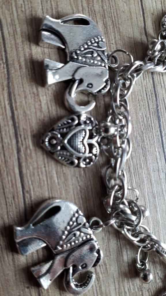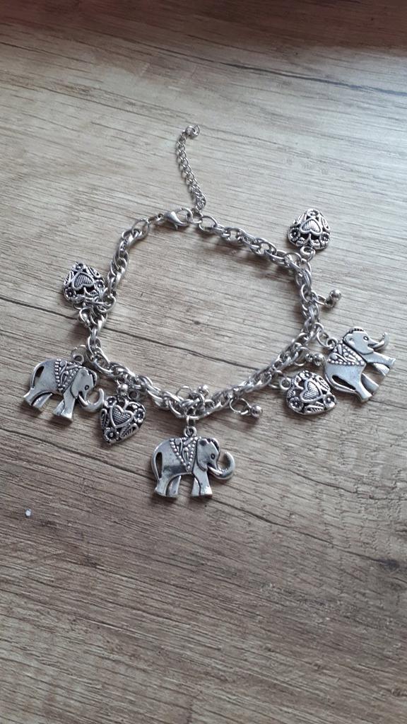 Veldig vakkert armring, tro mot bildene, god kvalitet. Fine nydelige anheng, små elefanter og hjerter. Jeg har både sølv og kobber, men kobberet er mer som gull, som gammelt gull.