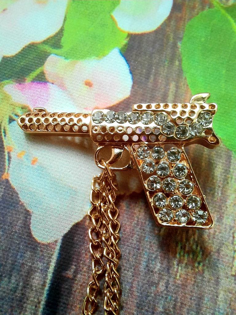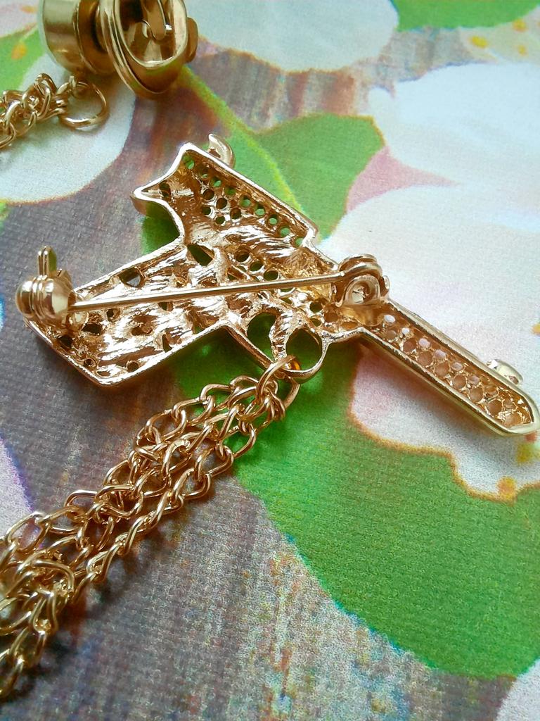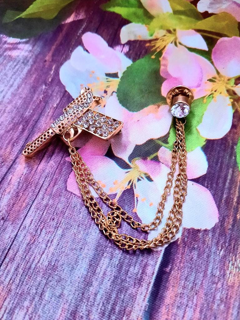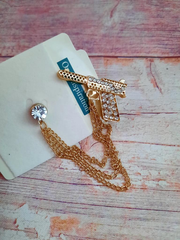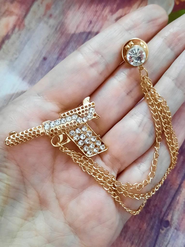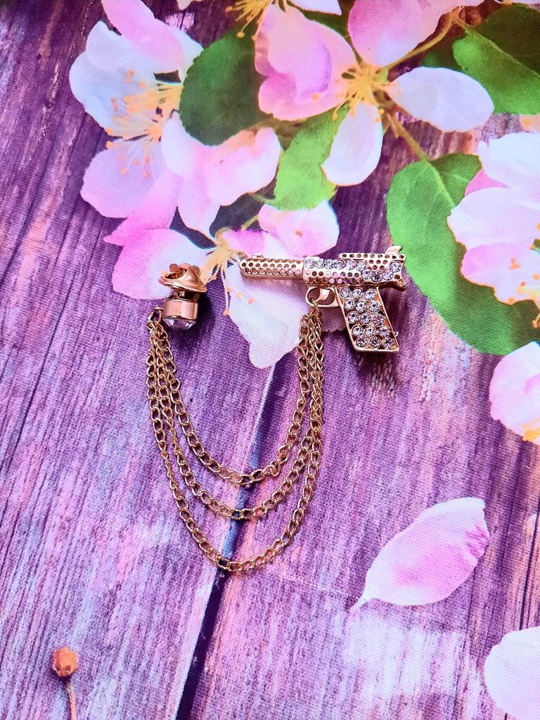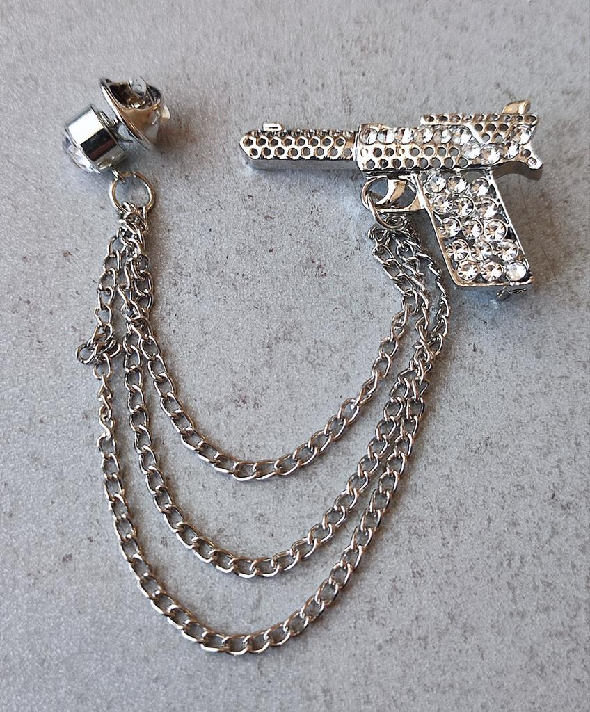 Blucome Fashion Chain Brosje Pistol Shape Pins Dames Brosje for Coat Suit Bag Hijab Pins