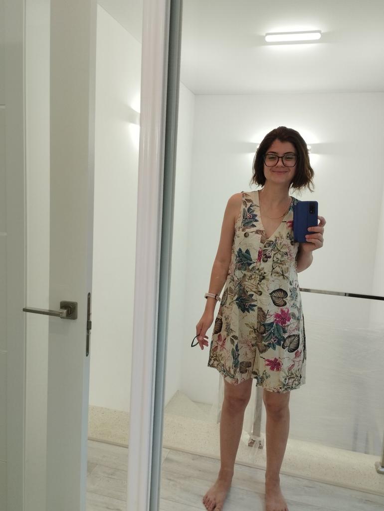 Lin materiale. Det er Lărguța behagelig og perfekt for sommeren! Den er godt sydd. Med et belte liker jeg hvordan det ser ut! Høyde 167 cm, 58 kg