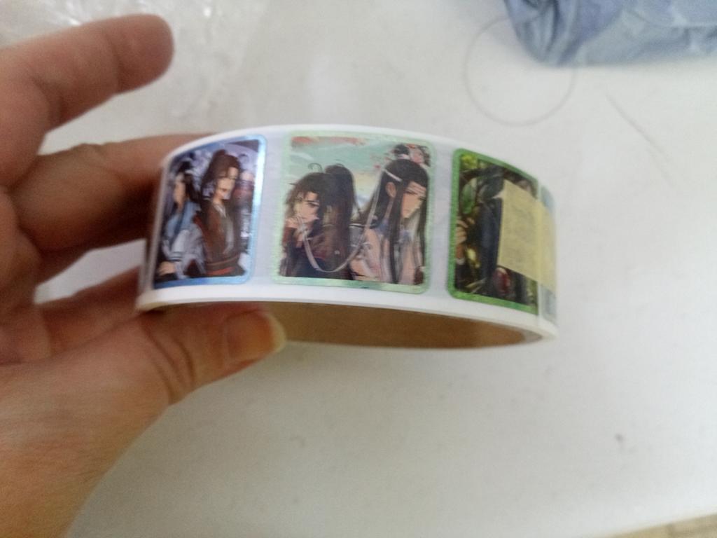 En hel rull med klistremerker i en veldig vakker pakke. Det er bare 10 bilder, så gjentas de. Utskriftskvaliteten er veldig god, ingen piksler. Klistremerkene blir ikke våte og fester seg veldig godt på forskjellige overflater.
