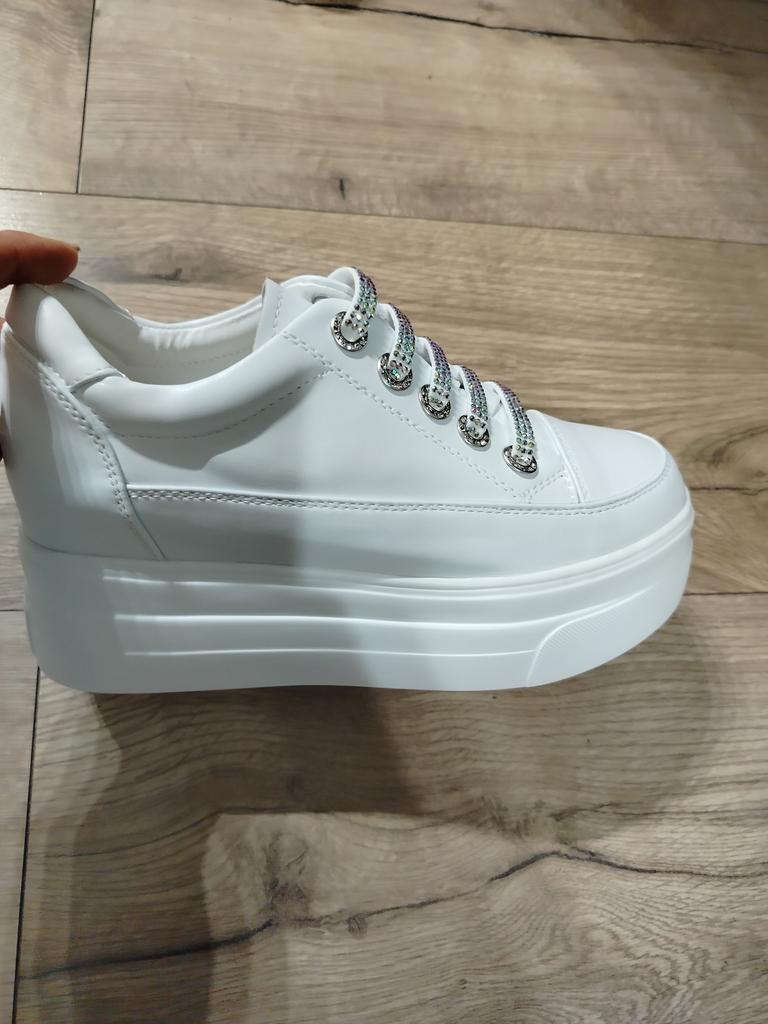 Fujin 8cm Platform Wedge Sneakers Damesko Ekte Skinn Bling Bling Blonder Hvite Sko Vår Høst Sommer Sko Fottøy