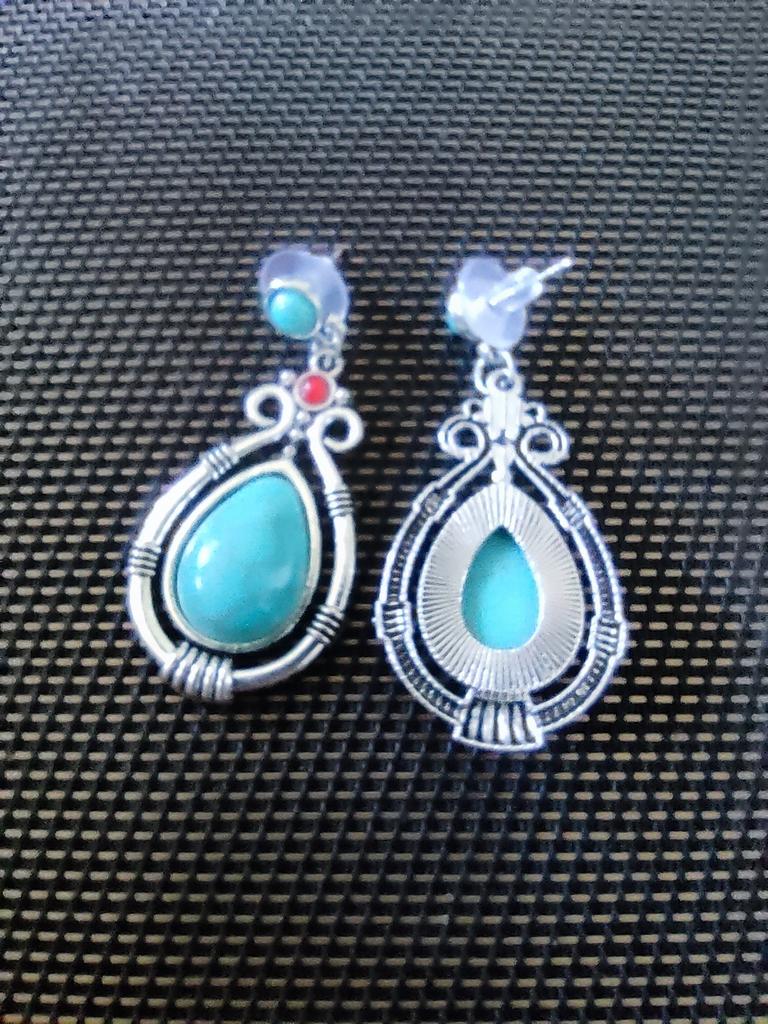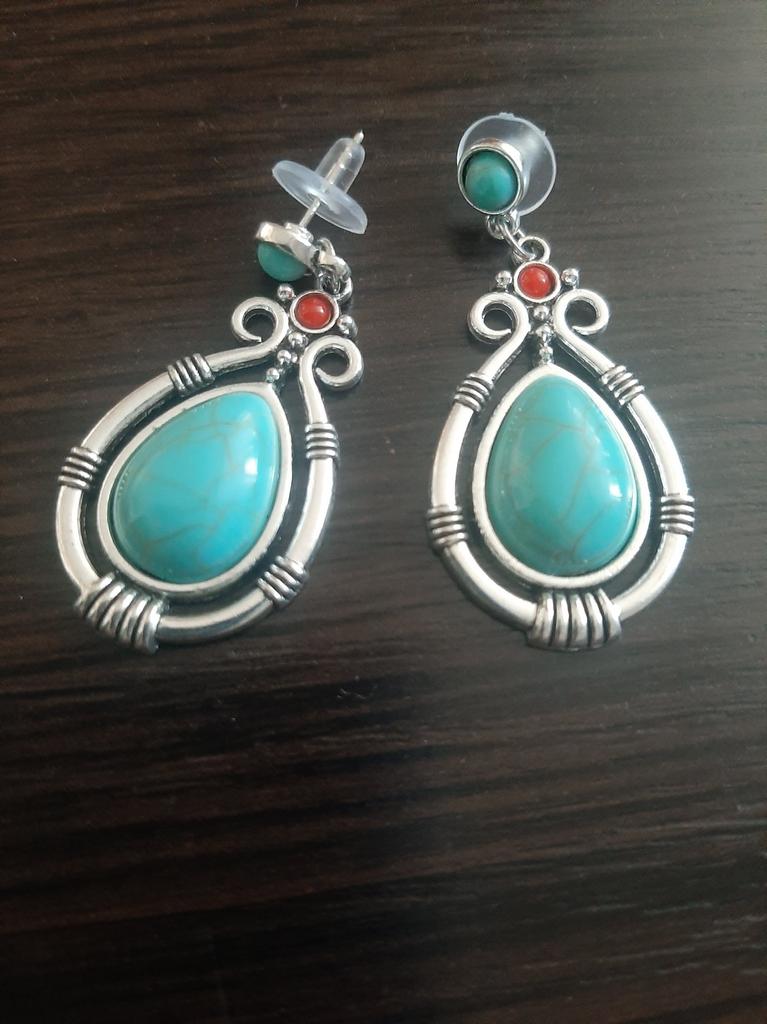 1 par mote vintage naturlig rød stein turkis vanndråpeformede dangle øredobber for kvinner, julebankett smykker gave